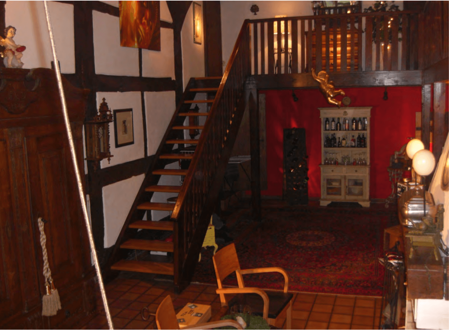Der Eindruck, den dieses Anwesen auf den Besucher macht, lässt sich nur schwer beschreiben, die Pläne und Fotos in diesem Exposé sind hier hilfreicher. Erreicht werden die oberen Geschosse über zwei Treppen-Emporen in der Eingangsdeele und in der Wohnzimmerdeele. Eine große Familie findet hier sehr gut Platz, ohne auf Gästezimmer zu verzichten. . Das Haus verfügt derzeit über mehr als 300 m² Wohnfläche, wobei weitere Platzreserven zum Aus- und Umbau vorhanden sind. Vor dem Hintergrund der steuerlichen Förderung denkmalgeschützter Objekte könnte dies für Erwerber besonders Interessant sein.